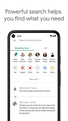 Key features of the app include group messaging, direct messaging, video and voice calls, screen sharing, and file sharing. Users can create chat rooms for team collaboration, assign tasks to team members, and share files directly from Google Drive. The app also integrates with other G Suite apps such as Google Docs, Sheets, and Slides for seamless collaboration.